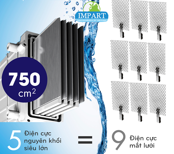 Diện tích tiếp xúc của bể điện cực của máy Impart cực lớn lên đến 750cm2