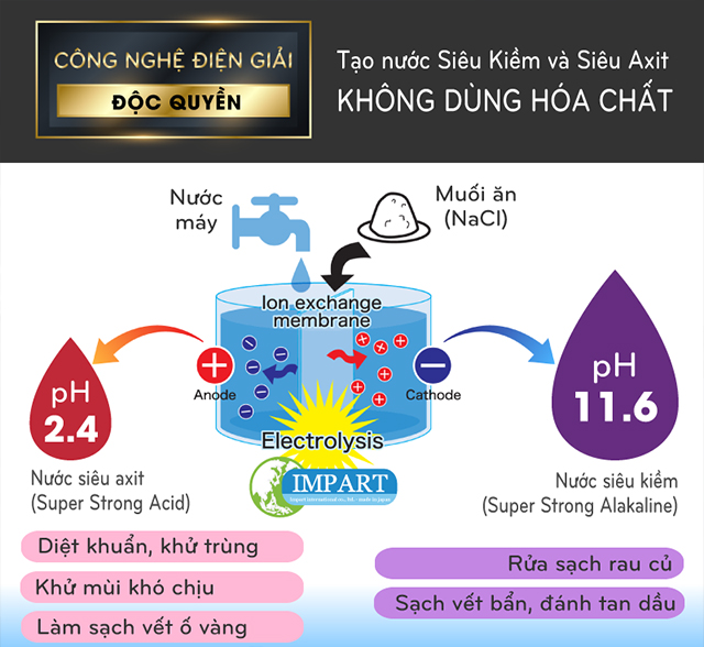 Máy điện giải Impart Excel-FX (MX-99) có khả năng tạo được nước siêu kiềm và siêu axit